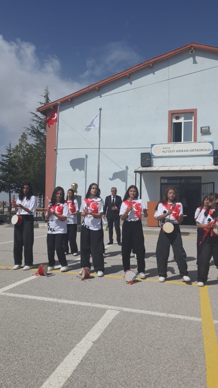 Okulumuzda 23 Nisan Ulusal Egemenlik ve Çocuk Bayramı ; velilerimizin yoğun katılımı ve öğrencilerimizin bayramın ruhunu tüm içtenlikleriyle yansıttığı bir şenlik havasında kutlandı.Çeşitli gösteriler,günün anlam ve önemini yansıtan şiirler ve geleneksel yarışmalar kutlama programına renk kattı.Bu bayramı çocuklarımıza armağan eden başta Mustafa Kemal ATATÜRK olmak üzere tüm şehitlerimizi saygı ve minnet ile anıyor, 23 Nisan Ulusal Egemenlik ve Çocuk Bayramını Ali Ulvi Arıkan Ortaokulu ailesi olarak en içten duygularımızla kutluyoruz.